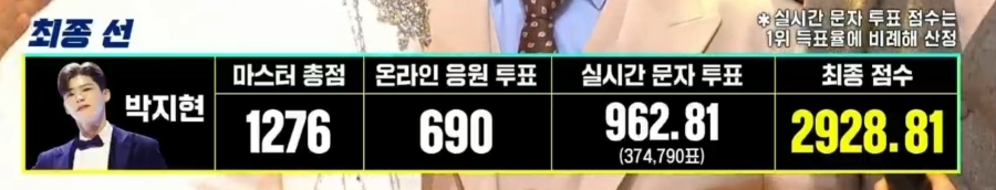 - 실시간 문자 투표 : 1500점 만점
